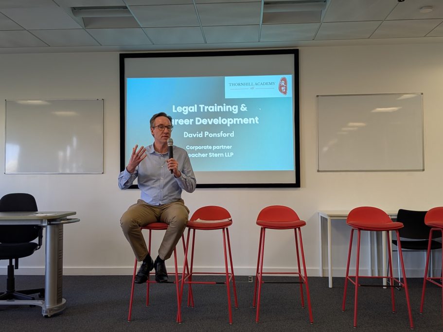 Corporate partner David Ponsford at Teacher Stern spoke about the diverse career paths available to law students, encouraging them to think beyond conventional routes and embrace a broader perspective in their professional journeys.